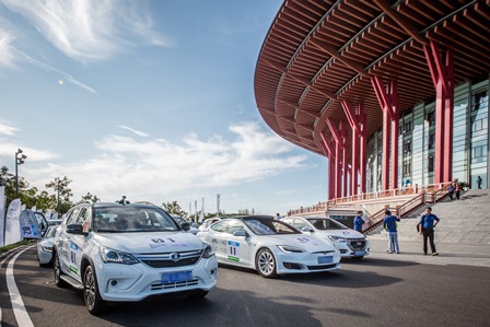 新能源汽车拉力赛参与车型最多、场地内外互通。50余辆不同品牌的新能源汽车在户外停车场集结,从会展中心鸣枪出发,在雁栖湖的醉人秋景中展开角逐,结束后统一在会展中心场馆内休息用餐。这是也是会展中心继“新能源车型试驾评选”活动后,再一次与新能源汽车携手。